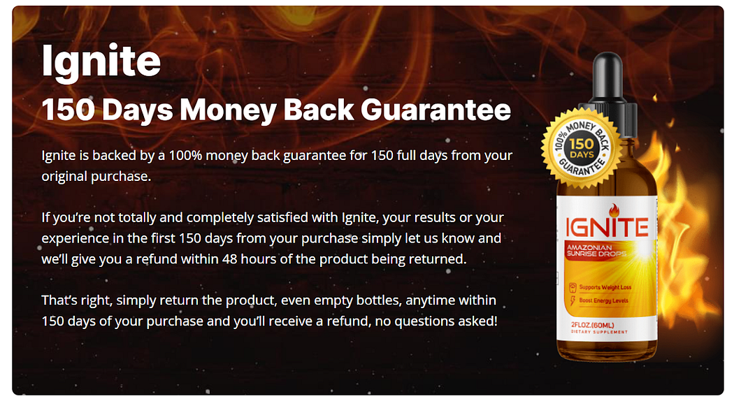 Moreover, all Ignite Drops ingredients are mentioned on the website so that you can see for yourself if the product is suitable for you or not. The 150-day refund policy is a cherry on top because that ensures your money is in safe hands even if you don’t achieve the desired results. Ignite Amazonian Sunrise Drops will act as a bridge that leads you to your dream figure. Get this supplement today while supplies last.